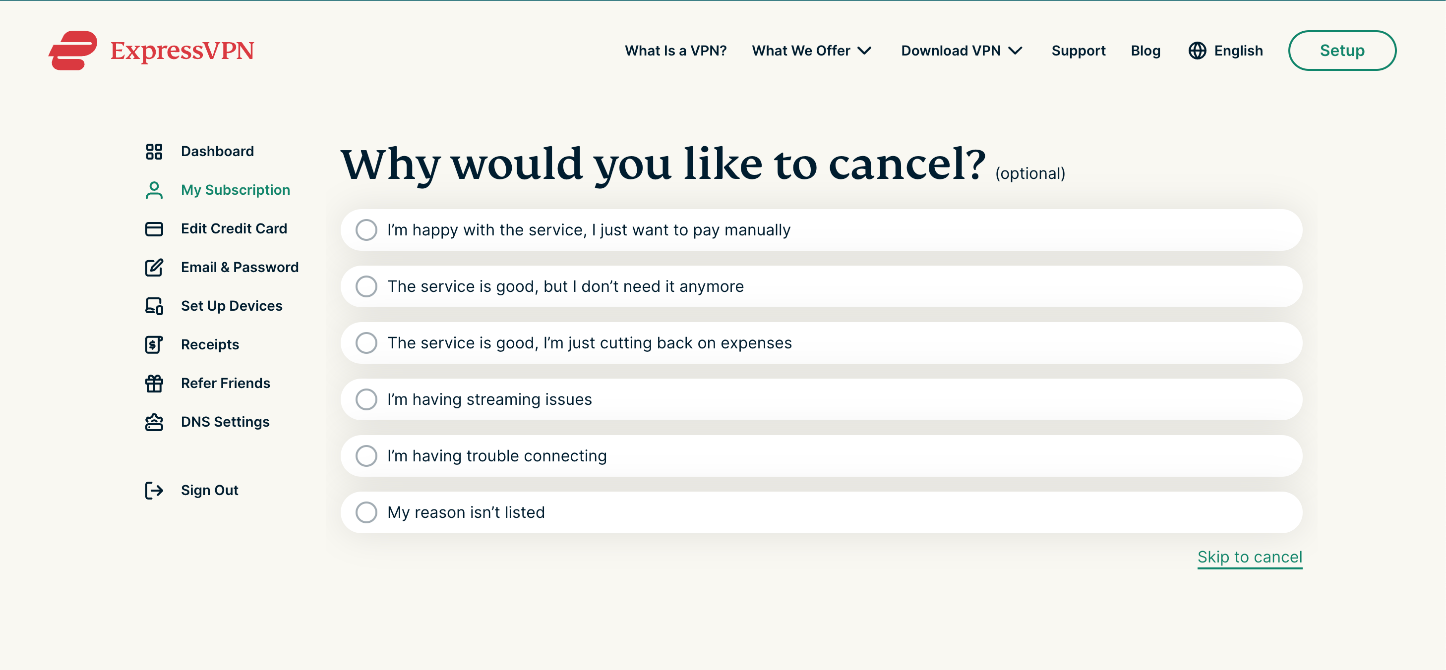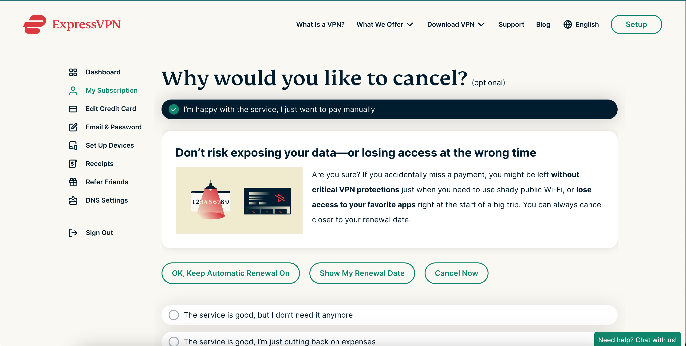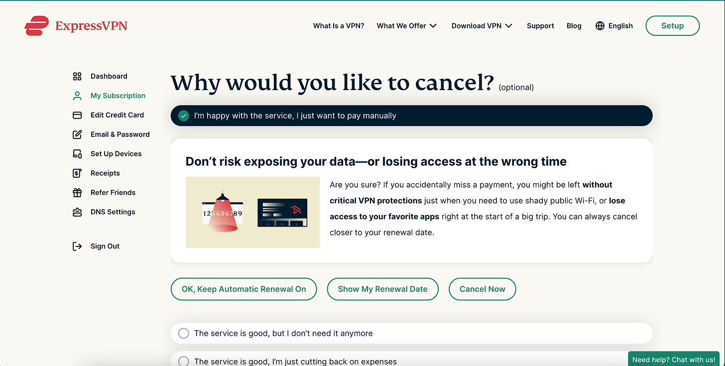 Here's what Express VPN asks users when they decide to unsubscribe.