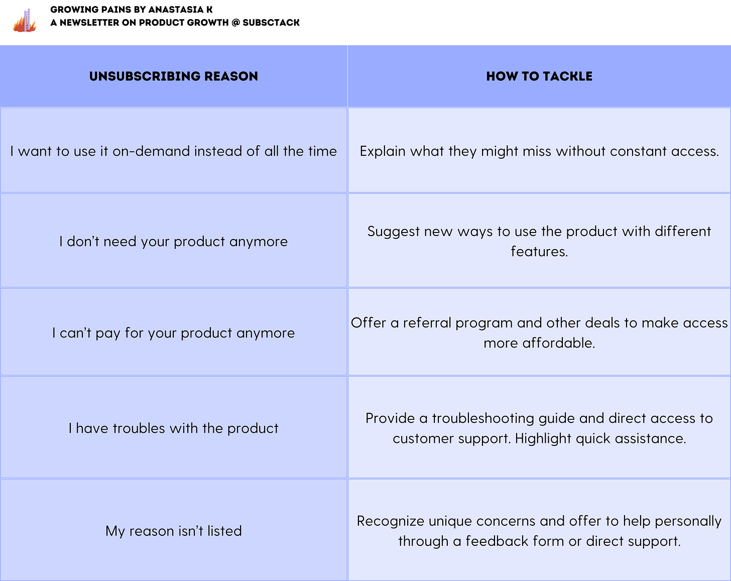 Here's an easy guide on how to respond to different reasons for unsubscribing: